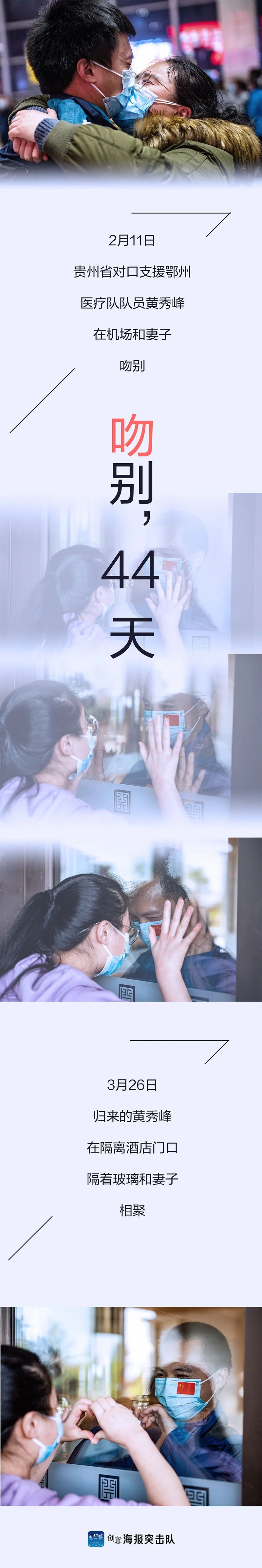 两人是大学同学,同年毕业后一起考到同一所医院上班。黄秀峰是血液净化中心的一名护士,2月12日随贵州省第四批援助湖北医疗队前往鄂州市。当天在机场送别时,两人戴着口罩含泪吻别的场景被记录下来,上了不少网站首页,感动了很多读者。