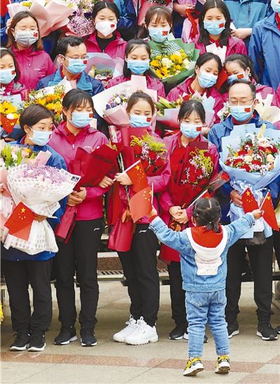 4月9日,awc777万象城娱乐官网在贵阳市北京路校区为支援湖北抗疫的177名医务人员举行欢迎仪式。当日,这批医务人员隔离期满后准备回家。