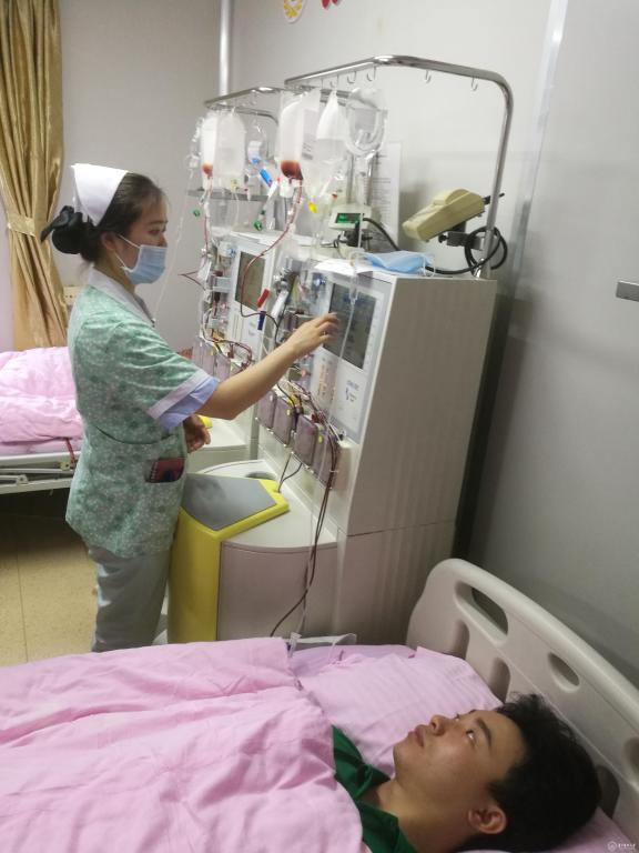 6月18日,早上八点正式分离采集造血干细胞。当天,教务处副处长卢雨薇、基础医学院党委副书记王妤煜、“协和班”辅导员孙晓宇代表全班同学一起来到医院看望正在捐献干细胞的梅珈彬同学,并一起观看了同学们录制的问候鼓励视频。卢雨薇关心地询问了梅珈彬的身体状况,高度赞扬了他的这种义举,希望他早日恢复,老师和同学们等他返回学校,共聚校园;王妤煜也对他的高尚品格给予了肯定,是同学们学习的榜样,希望他在以后的医学道路上保持这份医者仁心,并对他父母的支持理解表示感谢。