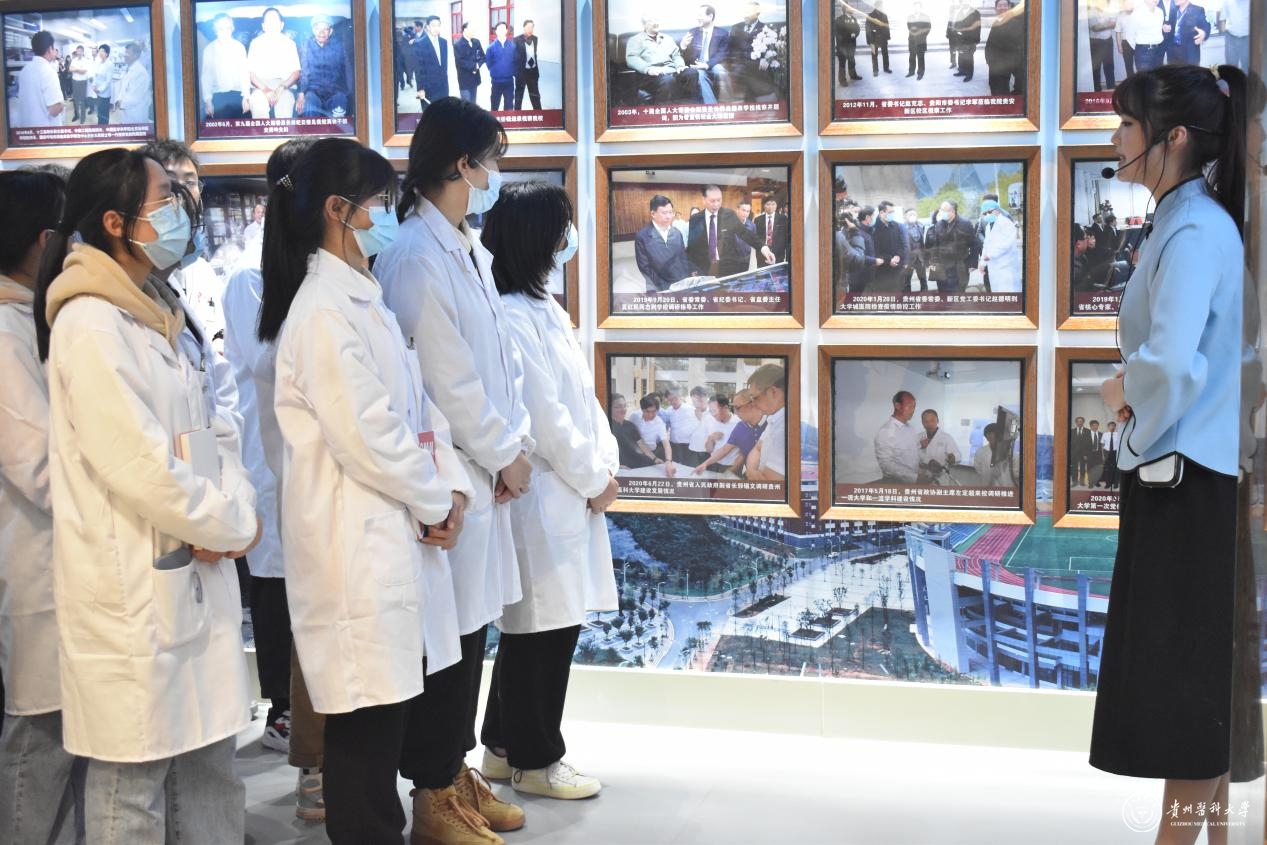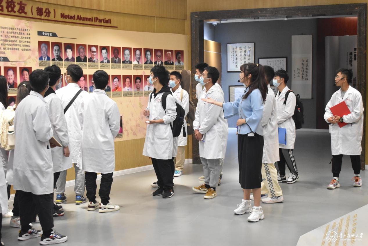 在校史馆,师生们在讲解员的讲解下,一起重温贵医历史沿革,体味校史底蕴,感悟“诚於己,忠于群,敬往思来”校训精神,开启一场沉浸式追忆学史盛宴。