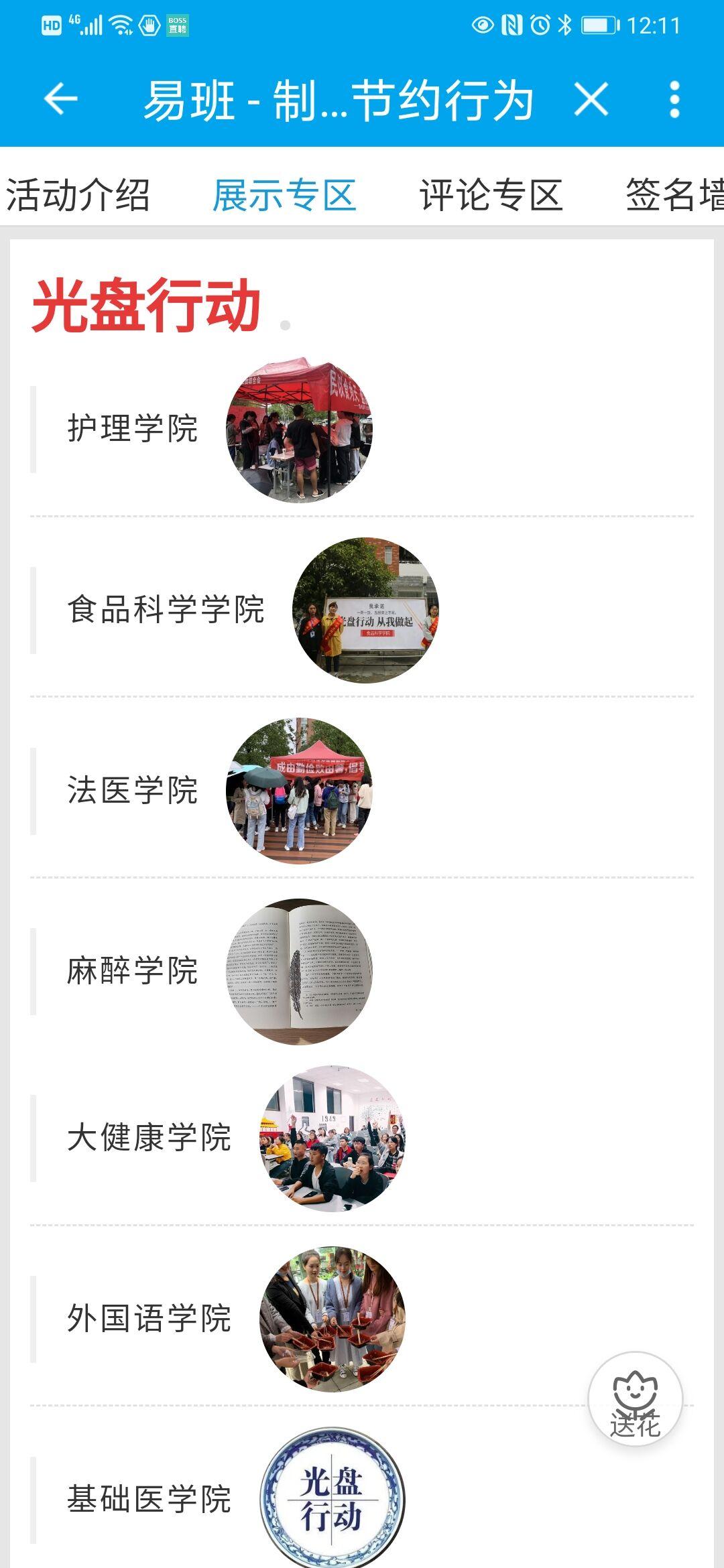 “易班”发展中心在平台上专设“光盘行动”快搭页面,各学院、各班将自己开展活动的情况进行集中展示,并踊跃进行线上留言、签名、打卡等,在“倡导节约生活,共建绿色校园,awc777万象城娱乐官网在行动+我倡议”的接龙活动中进行积极表态。各组织通过官方媒体对本次活动进行的宣传效果明显,浏览量达上万次,转发量超过两千余次,有效增强了学生爱惜粮食、勤俭节约、杜绝浪费的意识。