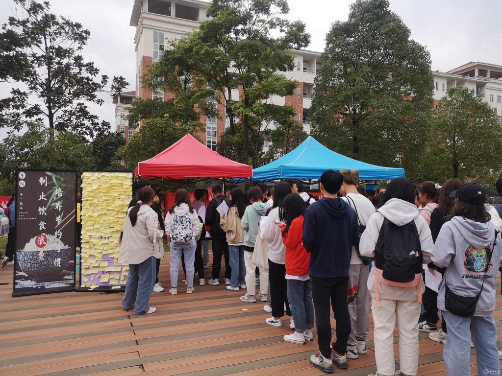 9月18日至20日,“拒绝餐饮浪费 培养节约好习惯”主题宣传活动在学校一食堂前举行,约4000人以签名、留言、宣讲等形式参与其中,纷纷表示要将“光盘行动,从我做起”的理念贯彻到现实生活中。同时,大学生自律委员会的学生干部在各食堂开展督导,对有浪费现象的同学加以提醒和宣传,号召广大同学响应号召,养成节约习惯。