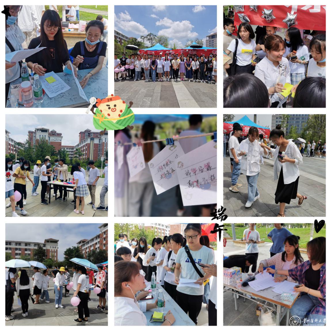 此外,2019级团总支开展了线上积赞,线下答题的“粽爱端午节,情系贵医人”活动,同学们你答我猜,争先恐后的回答着每一个和端午节有关的小知识,认真填写有关端午节的传统文化知识问卷,通过分享了解不同地区、不同民族的端午节的特殊习惯,激发学生热爱家乡、热爱祖国的情感,大家共同遥祝美好未来;2018级团总支以班级为单位开展主题活动,贴近实际、贴近生活、贴近师生,精心设计活动主题、活动形式,临床医学C班开展“端午安康,好运连连”,临床医学E班开展“浓情端午——户外野餐会”主题活动,临床医学G班开展情怀端午,开心放“粽”主题活动,通过班级主题互动,让学生以班级为家,在端午假日吃上一口粽子,感受来自家人的关心与爱护。