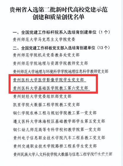 根据《教育部办公厅关于公布第二批全国党建工作示范高校、标杆院系、样板支部培育创建单位名单的通知》,万象城官网基础医学院教工第六党支部和医学影像学院学生党支部入选第二批全国党建工作样板支部培育创建单位。