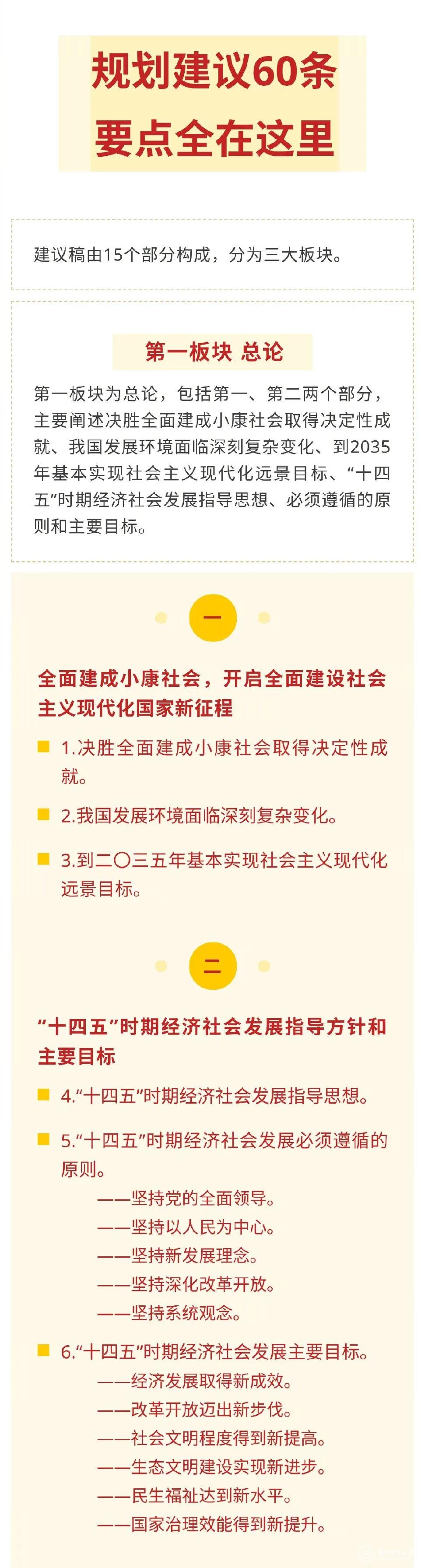 11月3日晚,新华社受权发布了《中共中央关于制定国民经济和社会发展第十四个五年规划和二〇三五年远景目标的建议》,共60条,要点全在这里