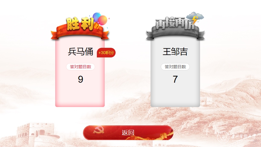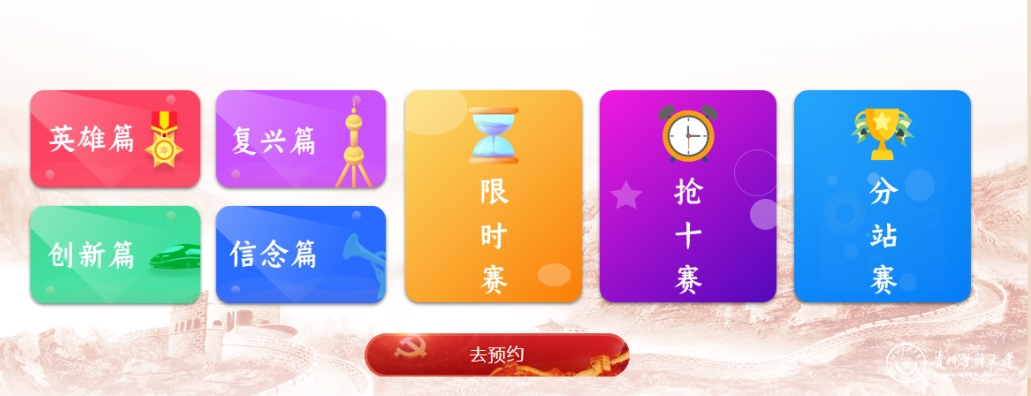 1、每日答题:选择英雄篇、复兴篇、创新篇、信念篇答题,系统按内容随机出20道题,限时10分钟,每题1分,根据选手答对的题数进行积分,分数计入个人积分。