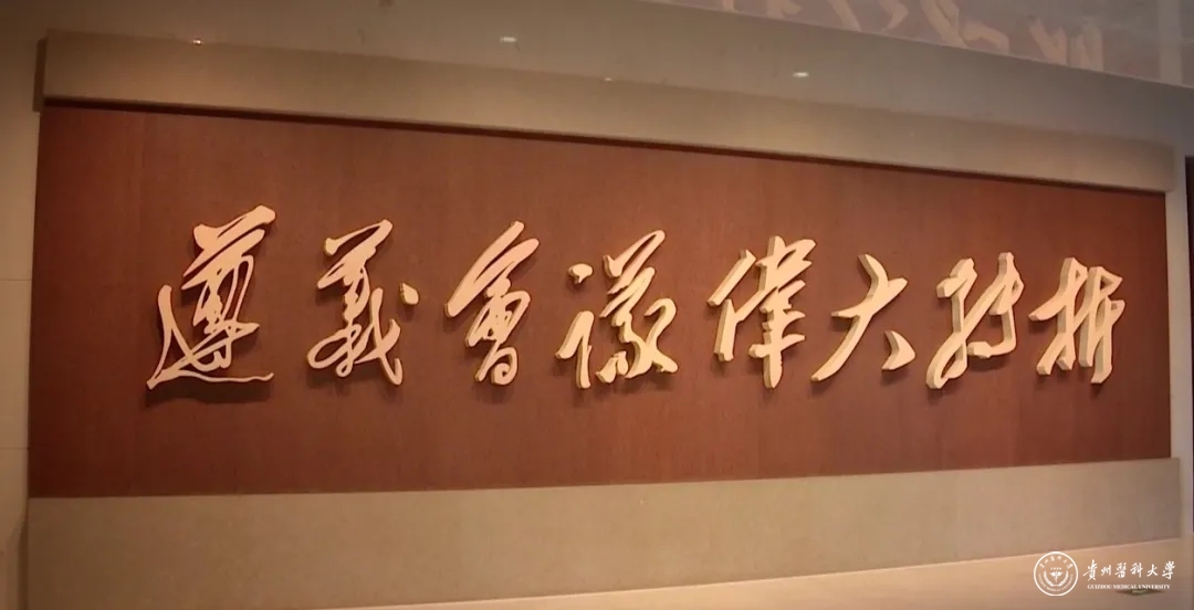 遵义会议陈列馆入口左侧毛泽东书法“遵义会议伟大转折”。 图:央视新闻