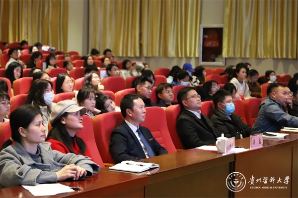 官志忠教授以党的二十大报告中关于教育、科技、人才的内容为导入,以学校的历史发展与演变为线索,从现代医药扎根贵州、艰苦创业逆境发展、创建体系脱颖而出、快速发展面貌更新、新的起点续写辉煌等五个版块,带领大家回顾了学校在不同历史发展时期积淀形成的贵医文化和杰出的科研学者,分享了自己在贵医的学习、成长、工作经历。他勉励同学们争做德智体美劳全面发展的贵医人,共同朝着“建成特色鲜明、同类先进、国内一流的百年医科大学”的总体发展目标不断前进。