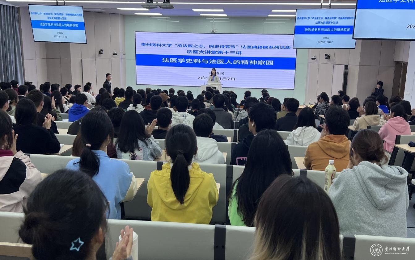 讲座在云漫湖校区临床组M102S教室举行,宋随民以“法医学史料与法医人的精神家园”为题,以时间为线索,深入浅出地讲述了法的出现与法医司法检验形成的时空条件。活动现场气氛良好,反应热烈。《折狱龟鉴》《棠阴比事》《洗冤集录》等一部部典籍的历史故事,深深吸引着在场的各位同学。宋随民寄语贵医学子“承法医之志,吾辈当自强”,自觉传承蓬勃有力的法医精神,勇担重大的历史责任,树立中华优秀文化自信,成为一名优秀的典籍“守护者”与“发扬者”。