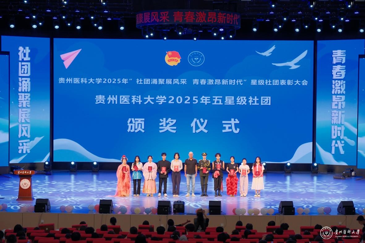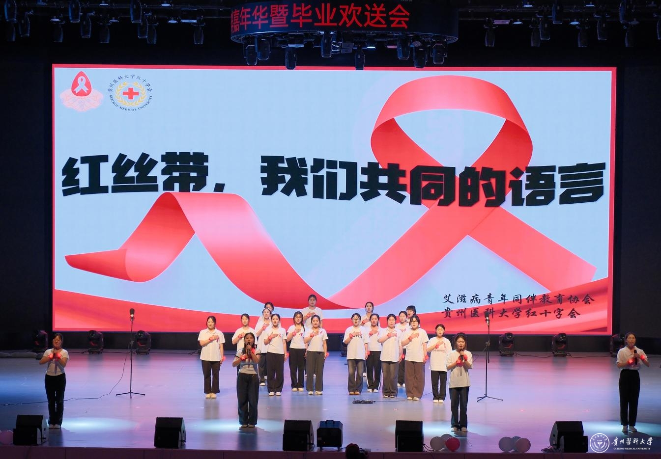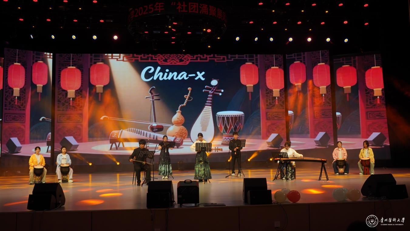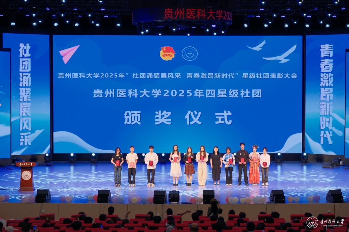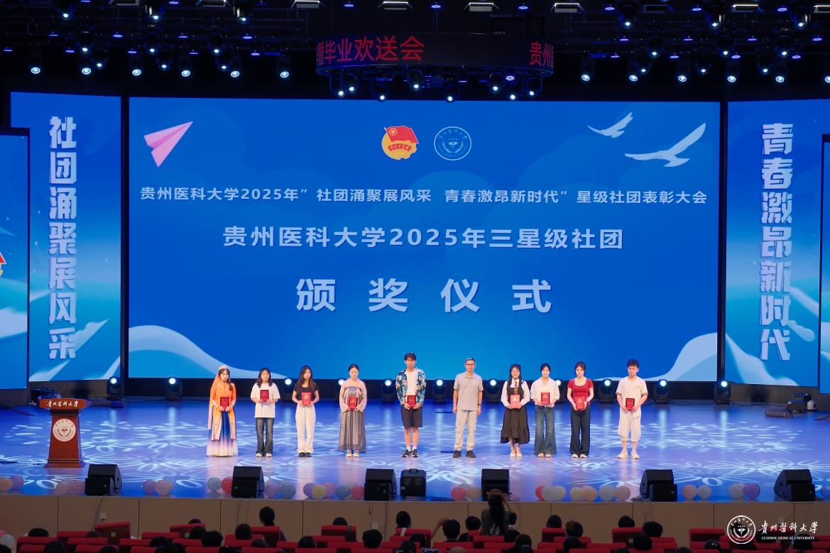 舞台之上,青春绽放。整场晚会汇聚了多元艺术形式,高潮迭起,精彩纷呈:中外学子联袂的《创意走秀》展现力与美;《龙腾狮跃》引爆传统激情;动感街舞、魔力配音、热情民族舞、燃炸说唱轮番登场;《我们的时光》浅唱离愁,《不熄》致敬“她力量”,活力二次元舞动次元壁;东西方韵律在《China X》奇妙共鸣;华服之美于《花神颂》中优雅绽放;深情朗诵《红丝带》传递责任;群舞《美丽中国》绘就盛世画卷。每一个节目都凝聚着学生社团的智慧与热情,为毕业生献上了一场视听盛宴,生动诠释了贵医校园文化的蓬勃生机。