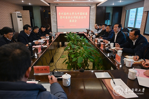 罗鹏对俞军方副总经理一行来校开展校企合作交流工作表示热烈欢迎,对中国联通贵州分公司一直以来在学校信息化建设上给予的大力帮助和支持表示衷心感谢,希望继续在云漫湖校区信息化、智能化建设方面加强校企合作,建设成为全省5G未来校园的新标杆、医学教育发展新高地。