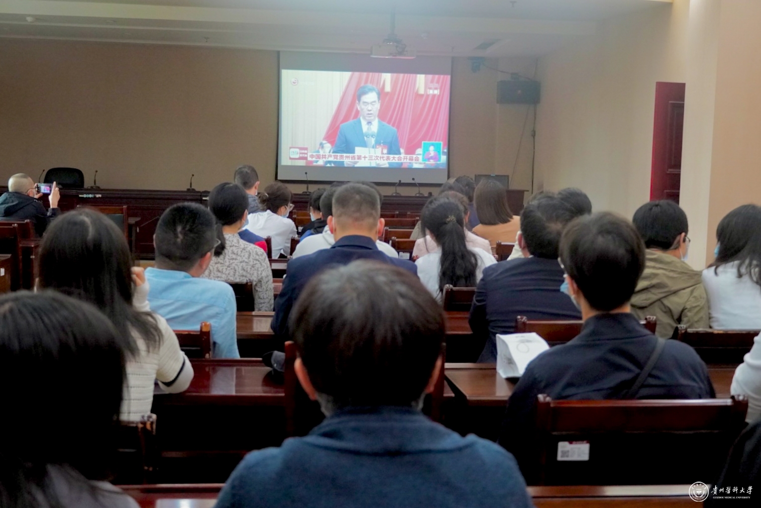 谌贻琴在报告中指出,中国共产党贵州省第十三次代表大会,是在党的二十大即将召开,我省如期打赢脱贫攻坚战,如期全面建成小康社会,开启全面建设社会主义现代化国家新征程的关键时期召开的一次十分重要的大会。大会的主题是:高举习近平新时代中国特色社会主义思想伟大旗帜,牢记习近平总书记殷切嘱托,坚持以高质量发展统揽全局,围绕“四新”主攻“四化”,奋力谱写多彩贵州现代化建设新篇章。贵州省第十三次党代会的召开,又一次激发了全校教职员工感党恩、听党话、跟党走的巨大热情。