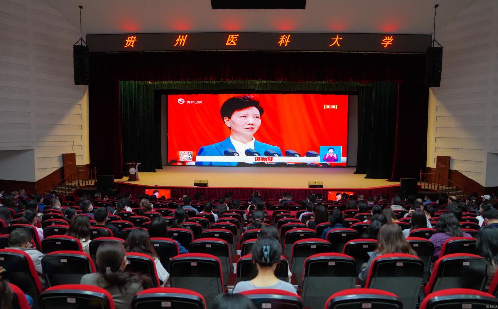 学校共设置两个集中收看主会场。在花溪校区礼堂,学校党政领导、机关党委下属各党支部全体工作人员、花溪校区各学院副科级以上干部、省纪委省监委派驻awc777万象城娱乐官网纪检监察组全体干部、教师党员代表、马克思主义学院全体教师、全体辅导员及学生代表集中收看。在北京路校区,各学院、部门的教师党员代表在行政楼7楼连廊会议室集中收看。集中观看师生共计2000余名。各基层党委(党总支)组织各部门教职医护员工生自行收听、收看,其余师生也在寝室等通过网络直播的形式收看了大会盛况。