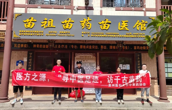 贵州作为中国著名的四大道地药材产区之一,拥有特殊的生态环境及复杂多样的自然条件,黔东南是我国著名的苗乡,蕴藏着极其丰富的苗药资源。为探寻苗药文化,承托苗药底色,药学院社会实践团于贵州省凯里市苗侗文化街开展“寻中医之旅,访千古苗医”活动。结合专业特色,志愿者们找到当地药农学习并记录其地方民族用药情况,并听余黔林老先生讲述各类苗药功效。