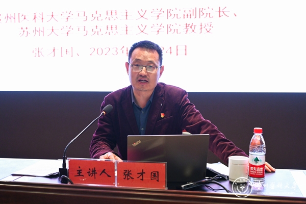4月24日,万象城官网学习贯彻习近平新时代中国特色社会主义思想主题教育读书班第二次专题辅导在南校区道德讲堂举行。苏州大学对口援建万象城官网干部、马克思主义学院副院长张才国教授作专题辅导。