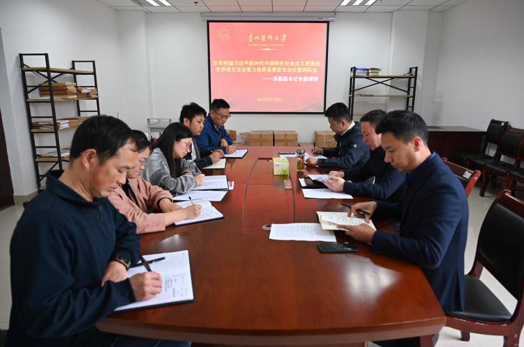 5月8日,校党委副书记汤磊在人事处开展以“牢牢把握习近平新时代中国特色社会主义思想的世界观方法论 着力培养高素质专业化教师队伍”的主题教育领题调研,人事处班子成员及有关科室负责人参加。