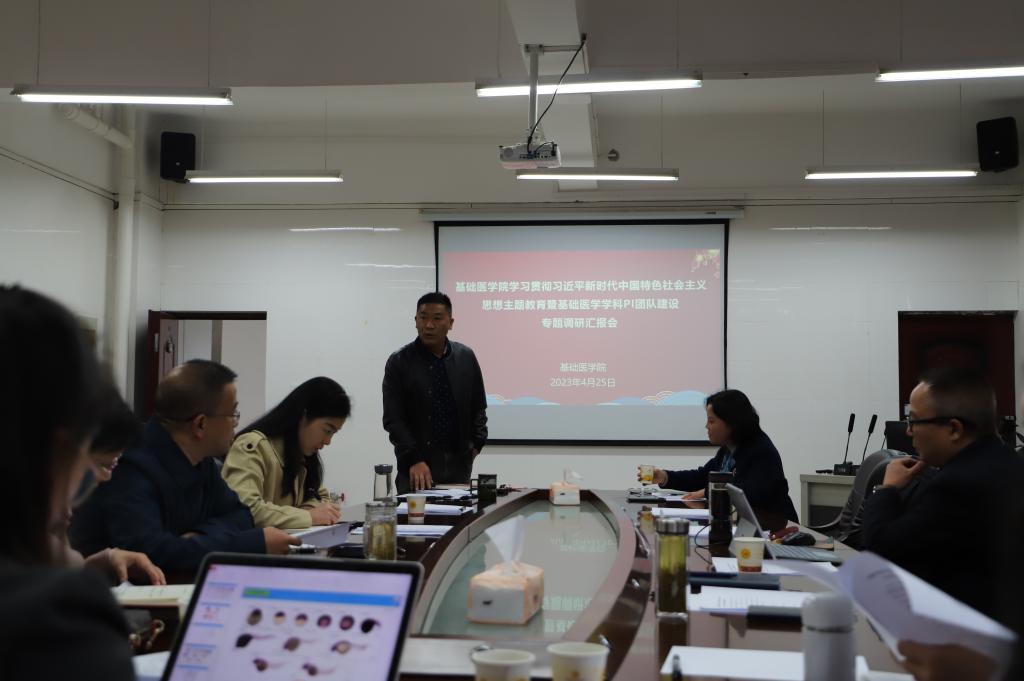 基础医学院基础医学一级学科下11个二级学科的25个PI科研团队分成7个组展开汇报。