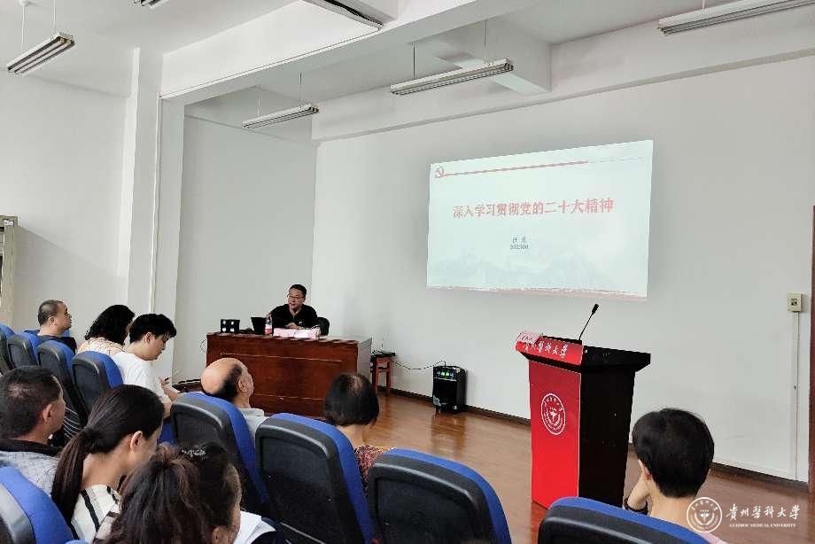 6月20日,贵州师范大学马克思主义研究院院长、汪勇教授在离退休工作处会议室围绕学习贯彻党的二十大精神作专题报告,离退休工作处退休老同志党员代表、在职党员、麻醉学院党员、成人继续教育学院党员参加。离退休工作处党总支书记、处长张雪晴主持。