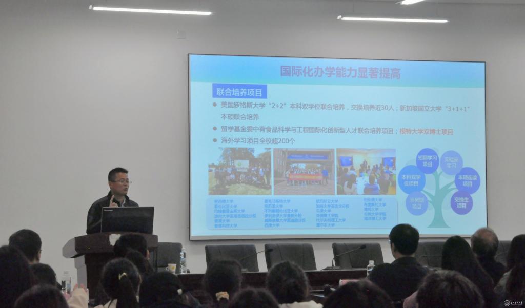 10月26日、29日,公共卫生与健康学院组织开展促进食品学科发展系列讲座。教育部高等学校2018-2022食品科学与工程类专业教学指导委员会副主任、中国工程教育专业认证协会认证结论审议委员会委员刘静波教授,南昌大学食品科学与资源挖掘全国重点实验室副主任、中国营养学会营养转化医学分会副主任委员、江西省营养学会理事长邓泽元教授,宁波大学食品与药学学院特聘院长潘道东教授,华南理工大学食品科学与工程学院的国家级青年人才孙为正教授、北京食品科学研究院的副总工程师孙勇研究员受邀进行交流讲座。校党委副书记、校长罗鹏,公共卫生与健康学院院长洪峰主持。贵州省生态食品创制工程研究中心、食品相关专业教师及学生参加。