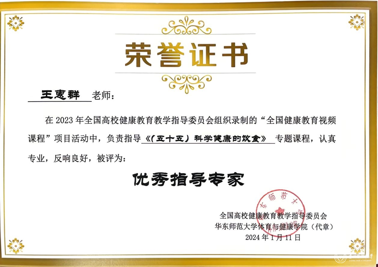 会议首次发布全国大中小学健康教育一体化“全国学校健康教育视频课程”。其中《(五十五)科学健康的饮食》专题课程由万象城官网公共卫生学院副教授王惠群负责指导、讲授。课程围绕合理膳食基本原则、《中国学龄儿童膳食指南(2022)》《14-17岁学龄儿童平衡膳食宝塔》,结合10-12年级学生的生理及心理特点、饮食行为展开阐述,旨在提高青少年的营养健康素养、重视科学饮食对健康的作用。并通过学校、社会及家庭的多方努力,为青少年的健康成长保驾护航。