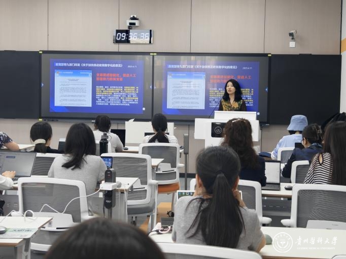 5月27日上午,在临床R402s智慧教室举办“AI工具赋能教学设计创新-基于超星AI工具平台的应用”专题工作坊培训。特邀全国优秀教师、国家级线上线下混合一流课程负责人、贵州理工学院陈燕秀教授主讲。陈燕秀教授以“AI赋能、人机共生-走向人工智能时代的个性化教学”为题,以国家级一流课程《电路原理》为例,讲解了AI工具在混合式教学中的创新应用。她聚焦数字化时代教学新问题,剖析了当下教学面临的新挑战,深入阐述了AI赋能教学的解决方案,分别从AI助教,AI陪练、AI实践三个方面进行了讲解与演示。