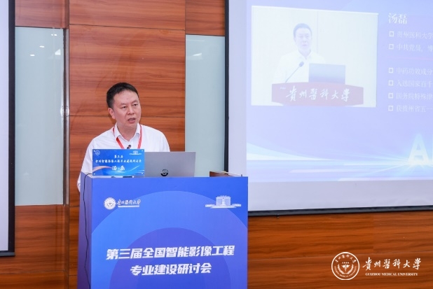 校党委书记、贵州省天然产物研究中心党委书记汤磊,校党委委员、附属医院党委书记李海洋,复旦大学附属中山医院葛均波和山东第一医科大学马新武等出席会议并致辞,对大会的召开表示热烈祝贺,强调智能影像工程在推动医学科技创新和高层次人才培养中的重要地位,期待通过此次论坛加强学科协作与创新发展,共同为智能医学影像人才培养作出更大的贡献。