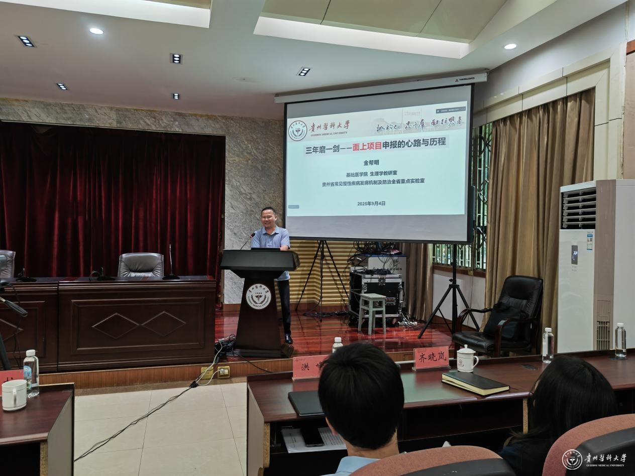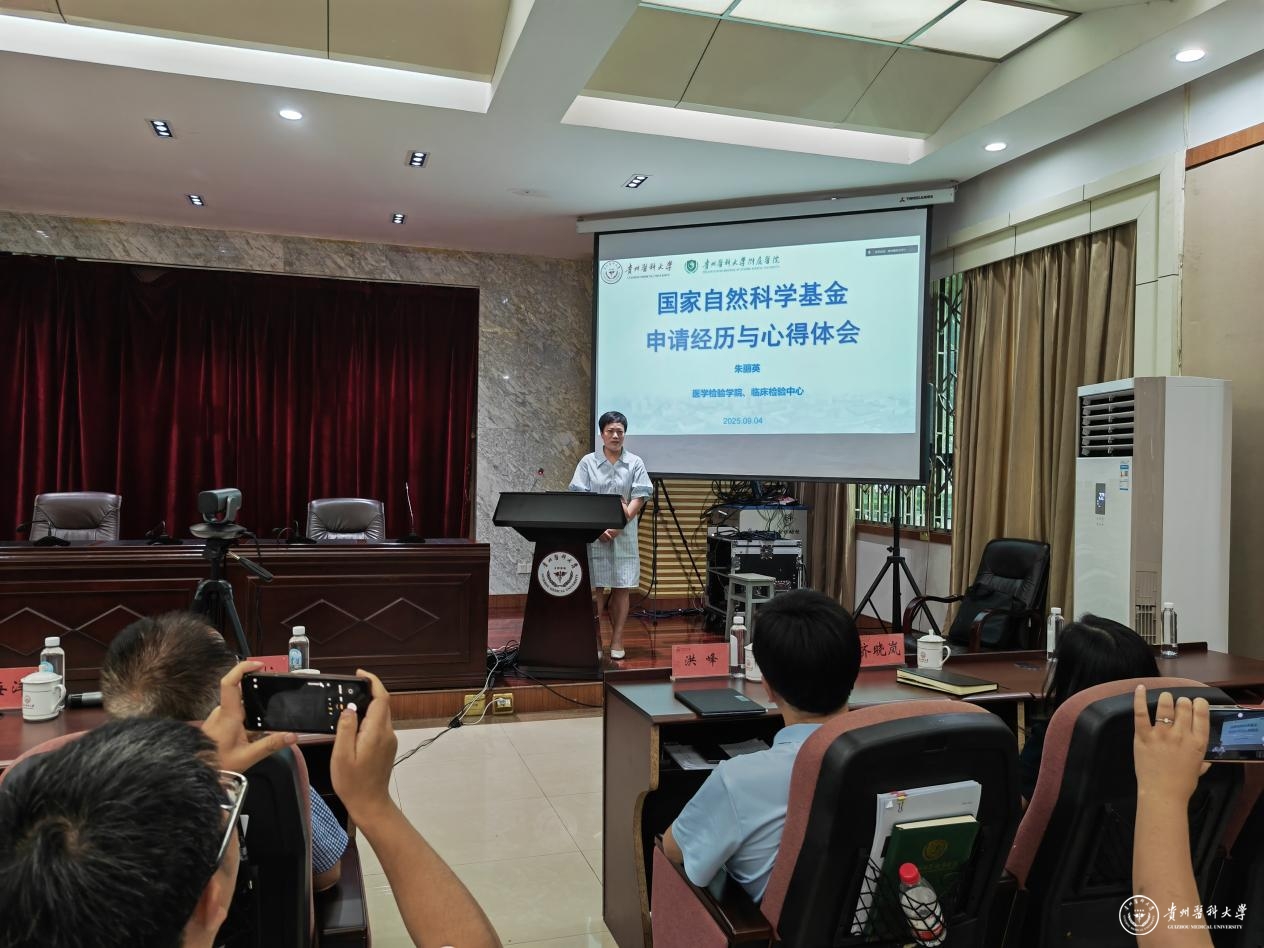 科技处处长李一欣对学校2025年度国家自然科学(社会科学)基金总体情况进行了总结,并对2026年度基金申报工作进行了安排部署。附属医院科研处处长刘丽荣汇报了附属医院2025年国家自然科学基金立项与资助情况,并对各科室在国自然申报中存在的问题进行了梳理。贵州省天然产物研究中心科研开发处副处长朱海燕对本单位2025年度项目申报情况以及2026年项目申报的总体规划进行了介绍。
