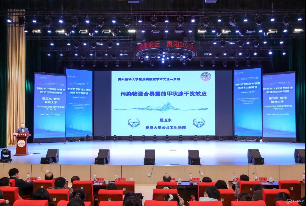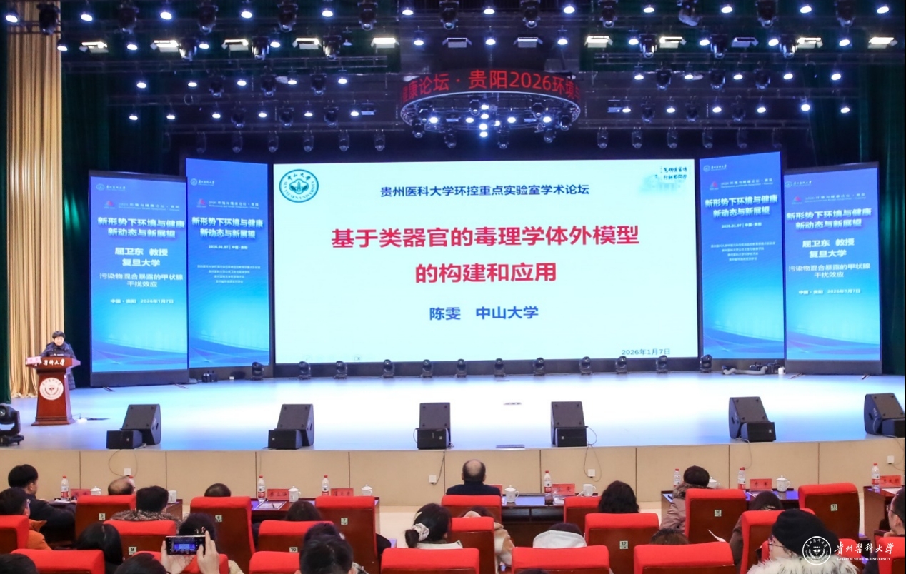 1月7日,以“新形势下环境与健康新动态与新展望”为主题的2026年环境与健康论坛在万象城官网云漫湖校区礼堂召开。论坛由awc777万象城娱乐官网环境污染与疾病监控教育部重点实验室、公共卫生与健康学院、科学技术处及贵州省环境诱变剂学会联合主办,邀请了青岛大学郑玉新教授、复旦大学屈卫东教授、中山大学陈雯教授、苏州大学秦立强教授、西安交通大学张峰教授作专题报告,共同探讨环境与健康领域前沿动态与发展方向。万象城官网师生代表400余人参加了论坛。