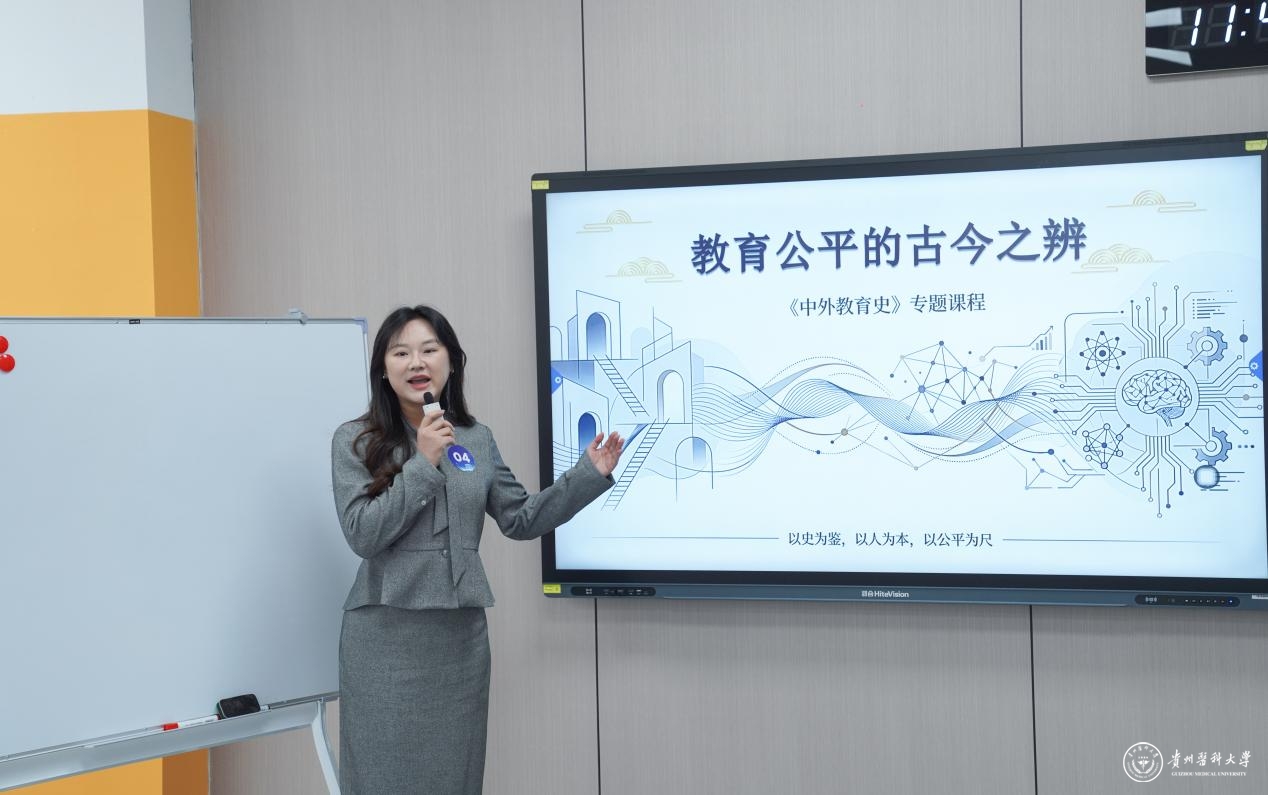 张吉介绍本次竞赛的举办背景、赛程安排、评审规则及参赛整体情况。她表示,本次竞赛聚焦青年教师教学核心能力提升,旨在通过搭建高水平交流展示平台,以赛赋能、以赛促成长,进一步激发全校青年教师投身教学、潜心育人的积极性与主动性,助力学校教育教学质量再上新台阶。