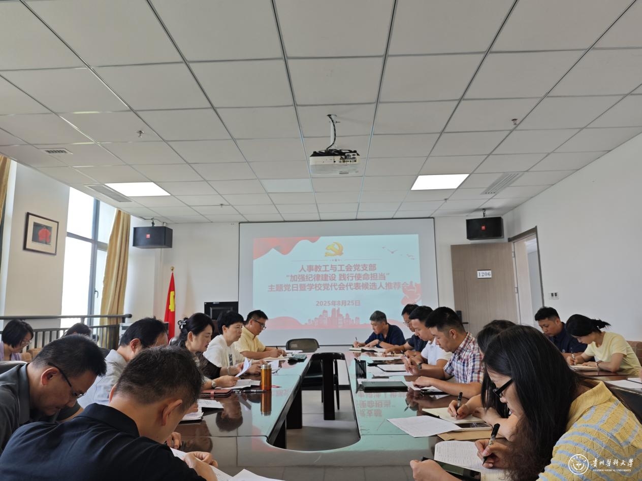 8月25日,人事教工与工会党支部在知雨楼1206会议室举行“加强纪律建设 践行使命担当”主题党日暨学校党代会代表候选人推荐会。校党委副书记张洁出席并讲话,支部全体党员参加,支部书记张婷婷主持。