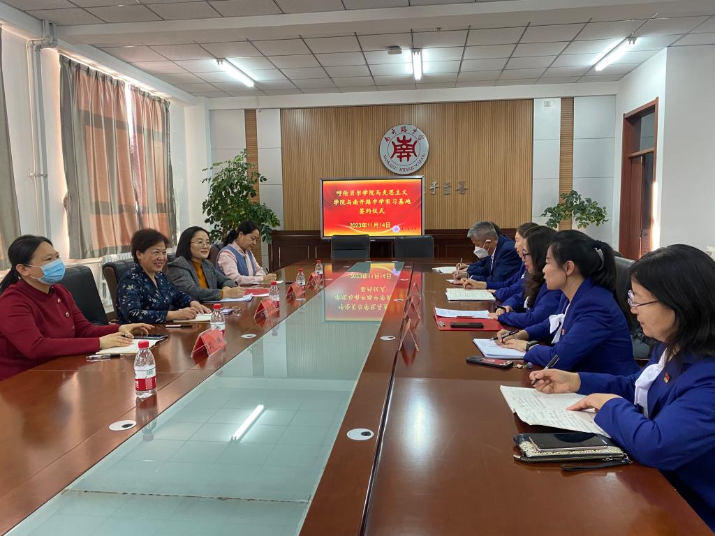 11月14日上午,KY开元集团官网与海拉尔南开路中学签订了共建教育教学实践基地协议书。学院党总支书记刘凤琴,院长吴秀芳,副书记刘琳、副院长明兰和南开路中学校级领导班子及思政课教师代表参加了此次仪式。