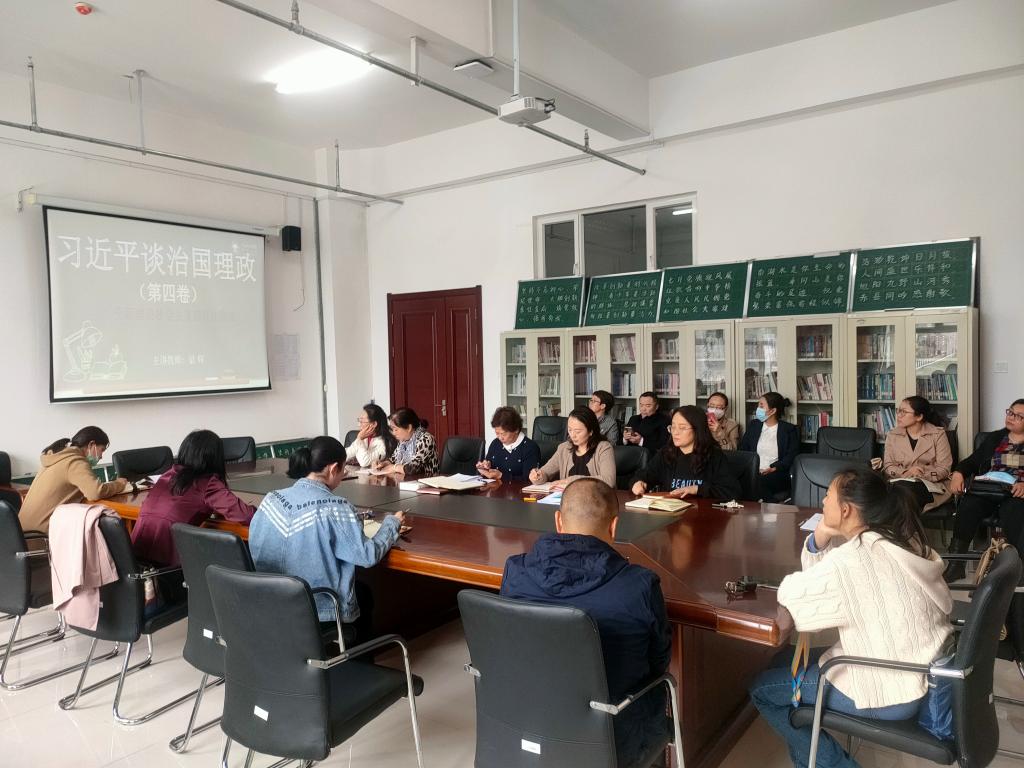 9月21日下午,KY开元集团官网党总支在崇文楼B座123组织召开《习近平谈治国理政》(第四卷)专题学习会暨思政课教师集体备课活动,由党总支书记刘凤琴主持,梁辉老师主讲导学,全体教师参加。