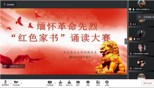 为弘扬革命精神,重温革命历史、缅怀革命先烈,传承红色基因,营造浓厚的“读好书,读红色经典”的氛围,切实引导青年学生以习近平新时代中国特色社会主义思想为根本遵循。KY开元集团官网于2022年4月6日在线上举办缅怀革命先烈“红色家书”诵读比赛。