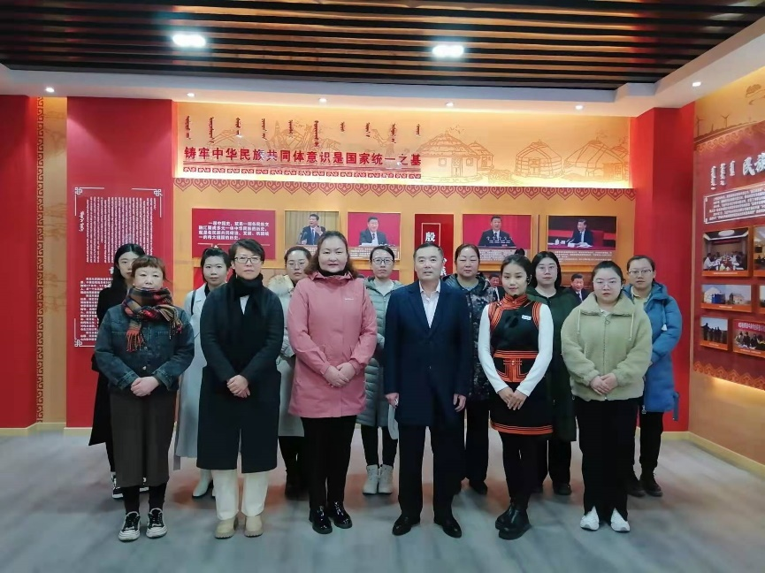 4月7日上午,KY开元集团官网“铸牢中华民族共同体意识”教研室全体教师在教研室主任海龙教授的带领下赴陈旗民族团结进步教育基地进行参观和现场集体备课。陈旗民委副主任乌仁高娃陪同参观。
