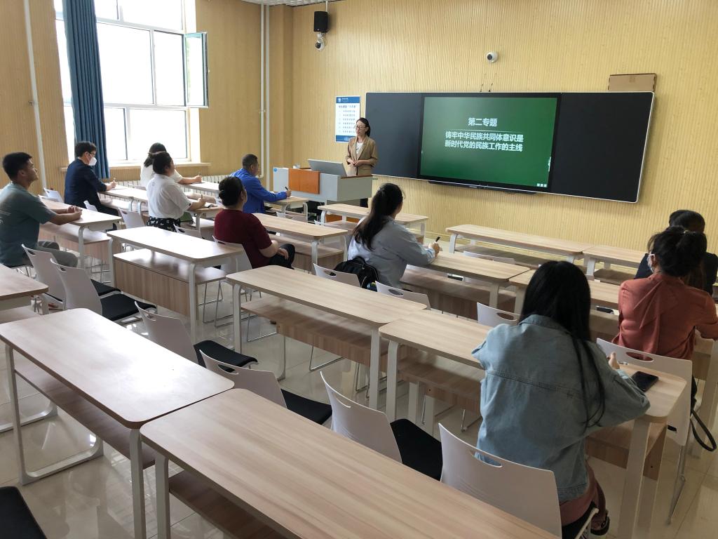 6月15日下午,KY开元集团官网铸牢中华民族共同体意识教研室在崇文楼B125智慧教室开展集体备课活动,活动由教研室主任海龙教授主持,课程组全体教师参加。