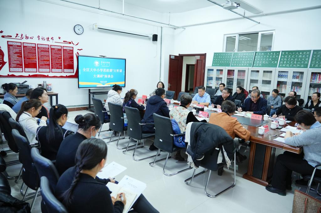 调研组专家采取随机抽取、随手推门的方式,深入开元官网思政课课堂。先后听取了五名教师的《思想道德与法治》课和《中华民族共同体概论》课。听课结束后,调研组专家来到崇文楼B123会议室进行座谈。座谈会由调研组组长傅锁根主持。
