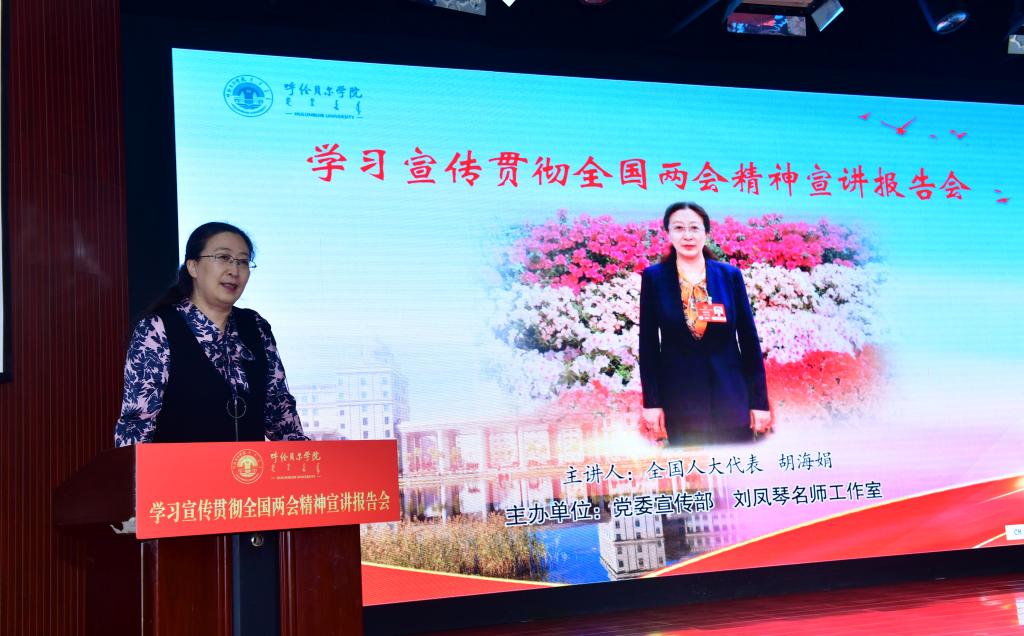 宣讲会上,胡海娟结合参会经历和履职实践,从十四届全国人大三次会议概况、习近平总书记在全国两会期间的重要讲话精神、大会各项报告的主要内容、会议期间内蒙古代表团活动情况以及本人的履职情况等五个方面进行了深入浅出的讲解,对开元官网学生深刻领会全国两会精神具有很强的指导意义。