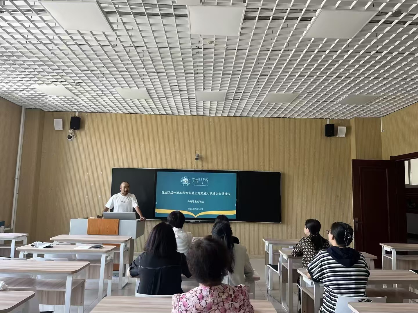 6月24日,KY开元集团官网举行自治区级一流本科专业赴上海交通大学培训经验交流活动,中国近现代史纲要教研室主任张舒老师重点围绕三个方面介绍了本次培训的心得体会。